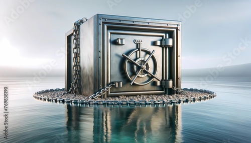 safe encircled by a moat with chains as a drawbridge concept of Financial Security