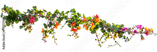 Succulent leaves hanging vines ivy bush climbing epiphytic plant with colorful flowers, isolated on transparent background