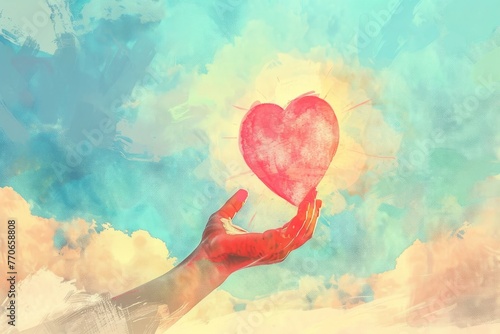 手のひらからハートが浮かんでいる水彩画イラスト(バレンタイン・愛・幻想・スピリチュアル)