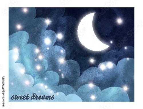 Grafika na plakat - niebo, gwiazdy i księżyc, akwarela - słodkich snów