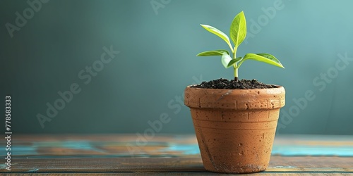 Capturing the essence of sustainable progress, a seedling thrives in a recycled pot, embodying eco-conscious business evolution.