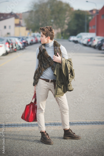 young beautiful short hair hipster woman