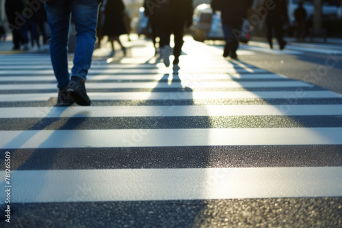 Crowd of People Crossing Street in Summer Evening Light