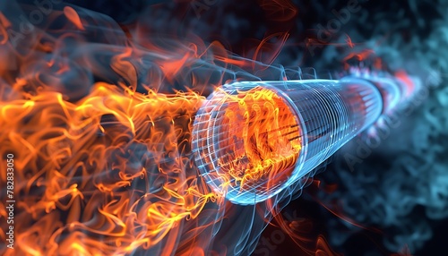 Visualize Jet Engine Combustion, Simulate Heat and Fluid Dynamics. Display temperature spread and velocity vectors for combustion efficiency