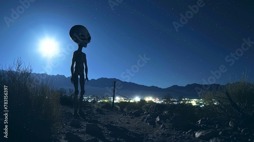 Moonlit Area 51, a stealthy alien encounter amidst the notorious desert facility