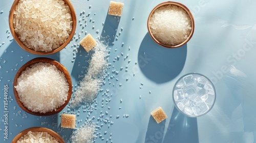 Wooden bowls filled with white and brown sugar cubes. Sweetness variety