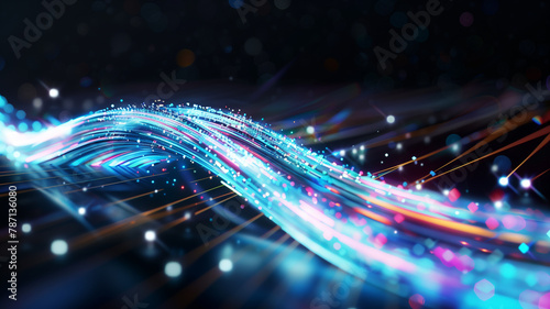 ultra-fast broadband network illustrated as an abstract, fast-flowing digital river, creative, photorealistic style