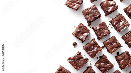 Chocolate brownies on white background top view copy space Delicious homemade dark chocolate dessert brownie : Generative AI