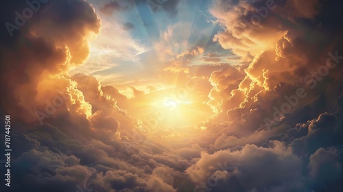 heavenly gateway to gods kingdom amidst ethereal clouds and divine light