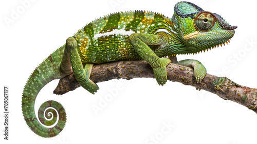 Green chameleon ( Chamaeleo calyptratus ) isolated on transparent background.