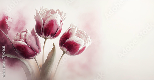 Tulipany w kolorze bordo, wiosenne kwiaty. Jasne pastelowe tło, puste miejsce na tekst, zaproszenie