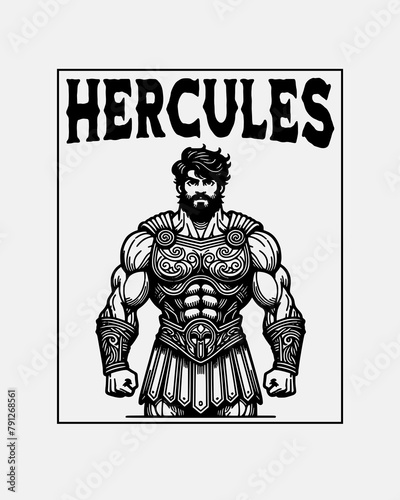half human half god hercules body muscles fighter warrior vector illustration