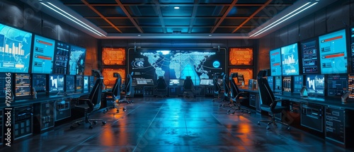 This is a shot of the System Control Monitoring Room. It is empty.