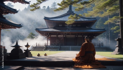 Meditierende Person in mystischer, heiliger umgebung, Meditation, Mönch,