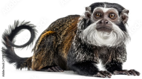 Emperor Tamarin Cut-Out: Isolated Primate with Majestic Moustache on White Background