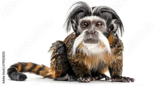 Emperor Tamarin Isolated on White Background. Primate Animal with Unique Moustache. Amazon Jungle
