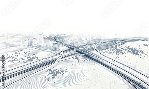 city map, transport infrastructure schemes, digital thin lines, geometric subtle elements, interface-like, white background