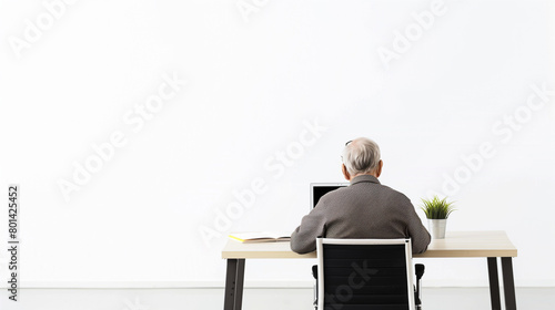 A senior at a desk, engaged with a laptop, representing adaptability to new tech. Ideal for digital literacy programs, retirement planning, or tech education content.