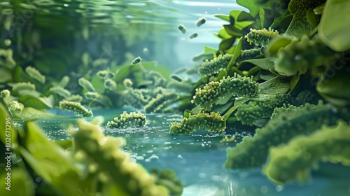 A closeup illustration of a biofilter where beneficial bacteria convert fish waste into nutrients for plants..