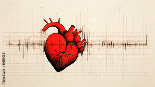 Drawing cardiogram with red heart. Broken heart and medicine concept.
