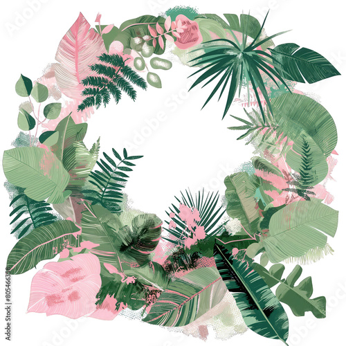 W kadrze znajduje się wianek z liści i kwiatów umieszczony na białym tle