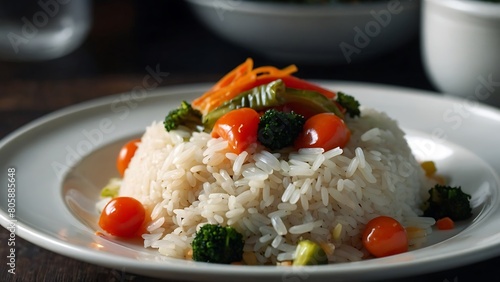 Delicious Fried Rice With Vegetables And Sauce On A Plate.