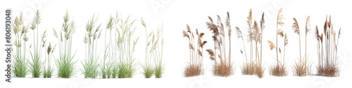 Green and Yellow reeds isolated on white or transparent background. 3d realistic rendering