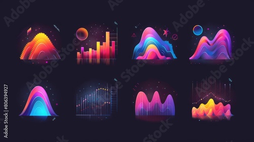 Growing bar graph icons. Business graphs and charts icons. Data and statistics modern icon. Statistics and data, charts diagrams, money, down or up arrow. Modern illustration.