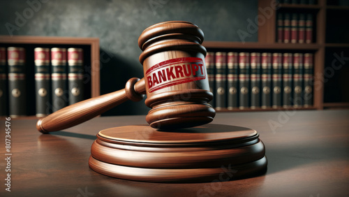 Judge's Gavel with Bold Bankrupt Declaration Stamp