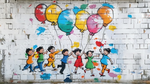 Na tej ścianie znajduje się wiele postaci kreskówkowych, takich jak Dzieci z karlito i postacie z komiksów. Graffiti zostało wykonane w stylu komiksowym, a całość ma jasne tło