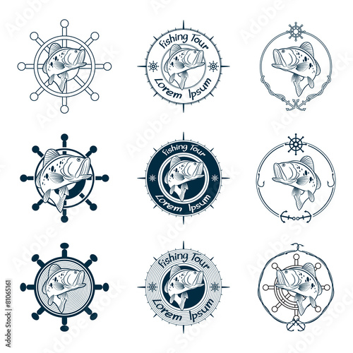 Bass fish symbol set on white background,Vector.