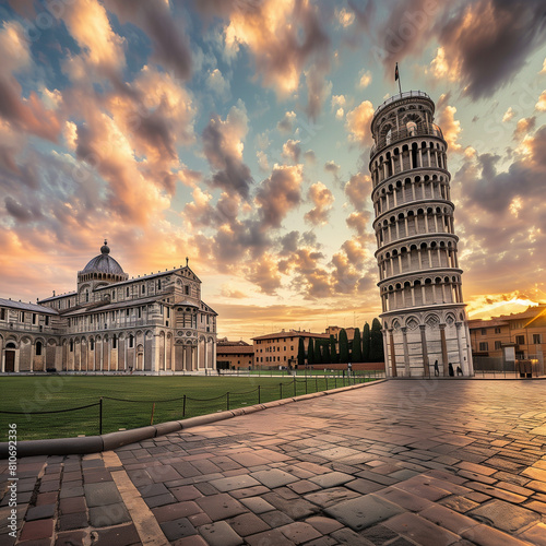Sunset View of the Leaning Tower of Pisa and Cathedral
