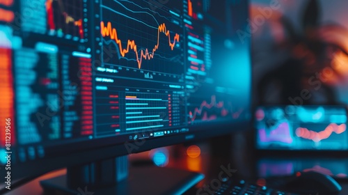Macro shot focusing on a computer display of SEO metrics and essentials, capturing the intricacies of algorithm adjustments and content optimization