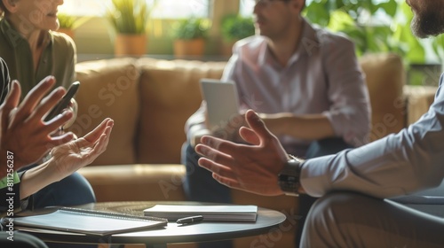 An illustration of a conflict mediation concept, depicting a professional mediator facilitating a settlement and peace agreement process between two opposing parties to resolve a dispute.