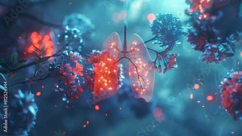 Visual concept of asthma, constricted bronchial tubes in tight blues and panicked reds