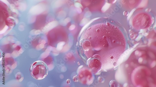 A captivating 3D animation of cosmetic atoms infused with nourishing ingredients, gently dissolving and releasing their benefits into a water droplet.