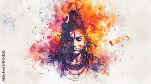 Beautiful digital painting of lord Shiva with a third eye and flames of wisdom on white background.