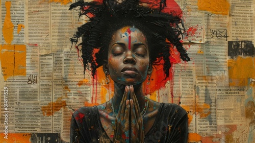 Contemplative artistic portrait on newsprint background