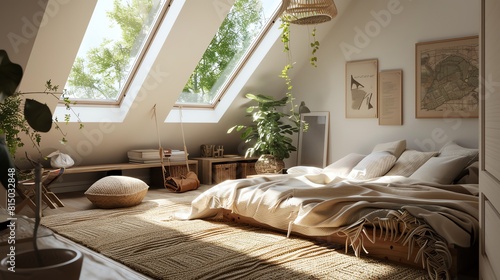 A Scandinavian attic conversion with skylights, low furniture, and cozy textiles to create a warm, inviting space