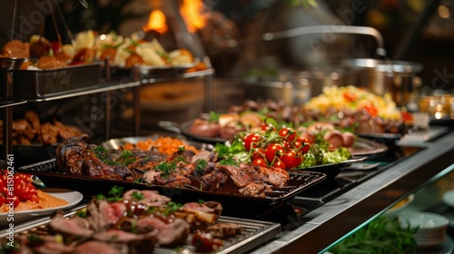 Catering buffet food indoor in restaurant with grilled meat. hyper realistic