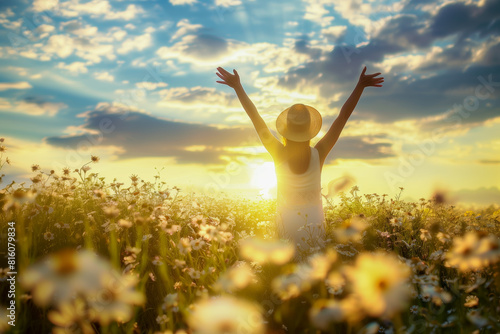 Spring positive greeting card banner with a delightful woman to lift your spirits and believe in the best.