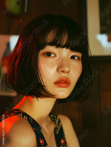 自然な表情を魅せるアジア人女性のファッションポートレート