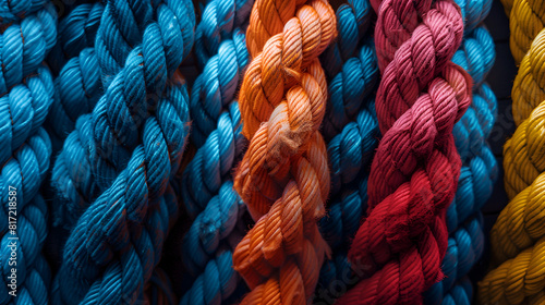 fondo plantilla wallpaper de cuerdas de colores con aspecto rugoso y áspero simbolizando el trabajo en equipo y la unión y fuerza fondo colorido para diseño