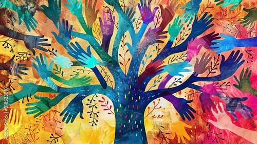 vibrant mosaic tree of diverse human hands unity in diversity concept illustration