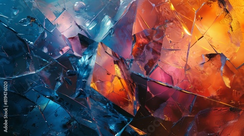 Amazing digital art. Fractured tempered glass with vibrant colors.
