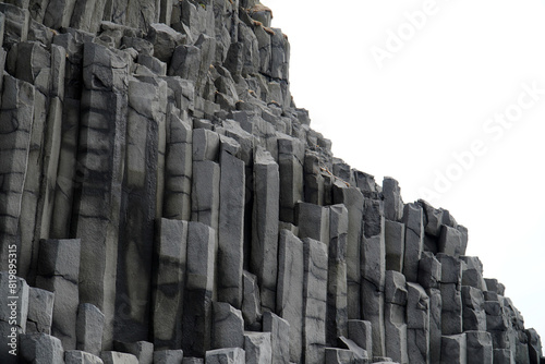 Vertical basalt column background pattern, showing the geometric hexagonal basalt rock. Reynisfjara beach, Iceland