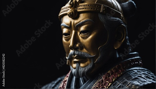 japanese emperor statue close up portrait on plain black background from Generative AI