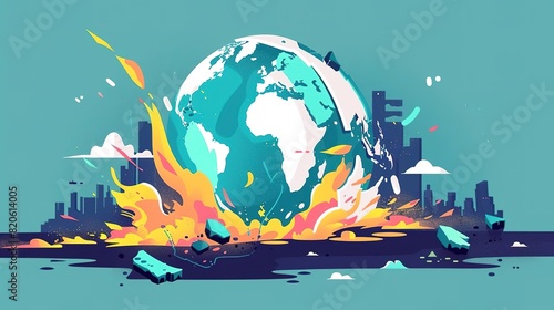 A digital painting of a planet on fire