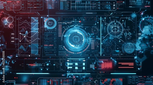 The interface of a futuristic artificial intelligence, displaying complex algorithms and data analytics visualization