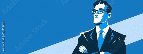 Authoritative Blue and White Duotone of a Focused Sales Manager in Formal Attire